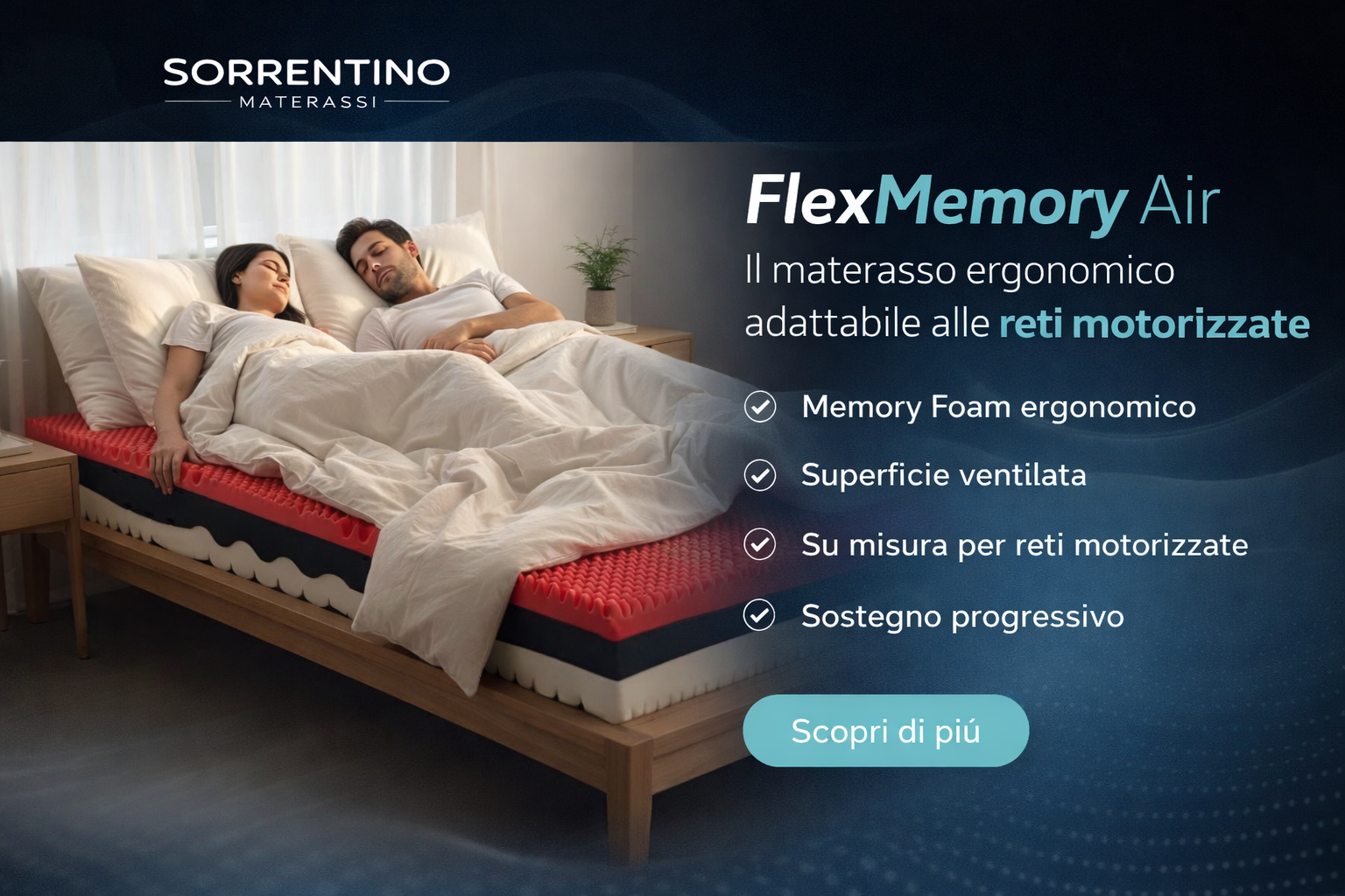 Il FlexMemory Air è perfettamente compatibile con le reti motorizzate grazie alla sua struttura in schiume tecniche altamente elastiche.